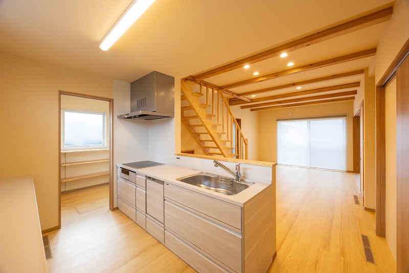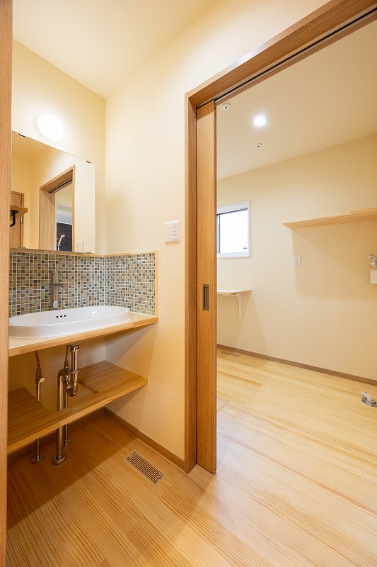柏崎市 K様邸 自然素材・新築・注文住宅 土間のある暮らし。 ~趣味のガーデニング用品を置いたり、自転車のメンテナンス場所にしたり、DIYスペースとして~ 玄関土間は自由度の高い多目的スペース 7522